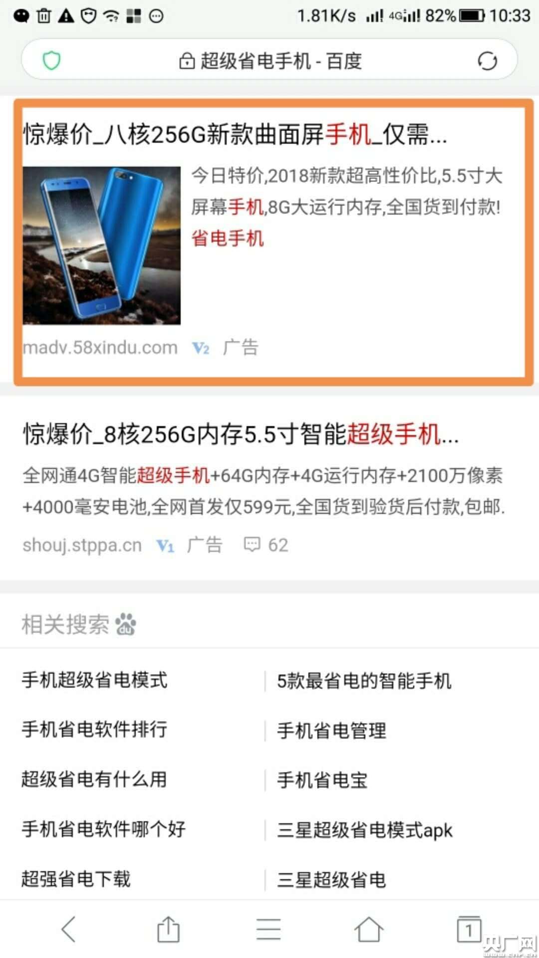 李先生網(wǎng)絡(luò)搜索購買的“超級省電手機”截圖