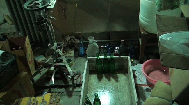 2018年1月,環(huán)食藥旅總隊(duì)接到舉報(bào),在北京市朝陽(yáng)十八里店鄉(xiāng)某村,盤(pán)踞一生產(chǎn)銷售假酒團(tuán)伙,經(jīng)過(guò)偵查人員縝密偵查,發(fā)現(xiàn)該假酒團(tuán)伙以親戚、老鄉(xiāng)為紐帶,把租住的村民自建房作為生產(chǎn)、加工、存儲(chǔ)假酒窩點(diǎn),將假酒灌裝至收購(gòu)來(lái)的酒瓶中,并包裝成品牌白酒,銷售至周邊市場(chǎng),形成了生產(chǎn)、加工、銷售“一條龍”的全鏈條,嚴(yán)重?cái)_亂北京市酒類市場(chǎng)生產(chǎn)經(jīng)營(yíng)秩序,危害到人民群眾的健康。