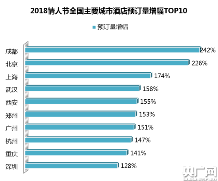 情人節(jié)“巧遇”除夕,一些商家也敏銳地察覺到這個商機。這一因素也明顯推高了部分城市的酒店預(yù)訂量,情人節(jié)帶來的蜜月游需求也拉高了相關(guān)目的地的主題酒店預(yù)訂量,經(jīng)濟(jì)型酒店、情侶主題酒店等預(yù)訂量大增。
