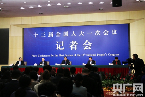 十三屆全國人大一次會議記者會現(xiàn)場(央廣網(wǎng)記者 曹宇 攝)