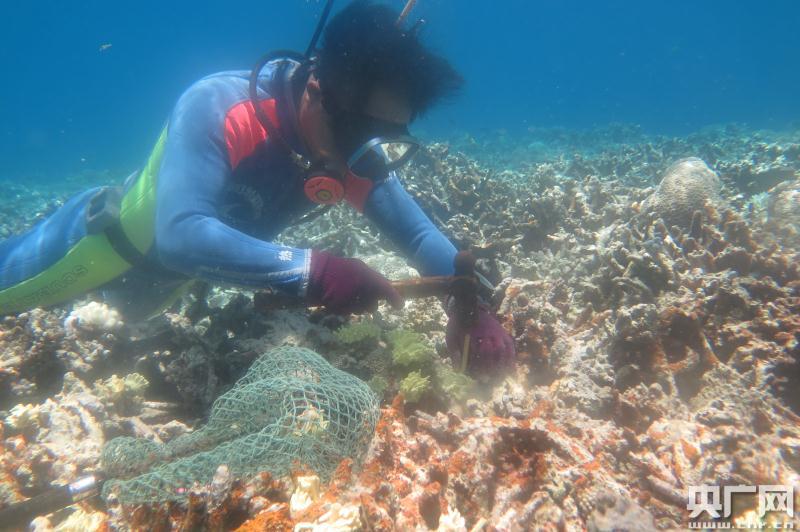 “我在鳳凰島投人工珊瑚礁石時,綁著1噸多礁石的繩子一下子纏到身上,將脖子死死勒住。幸虧后來用潛水刀割斷繩子,才和死神擦肩而過。”談及長期以來海底作業(yè)的艱辛,陳宏只是一笑帶過。然而正是這一次又一次的扎入水中,星星點(diǎn)點(diǎn)地拼湊出如今近岸珊瑚叢生,魚群環(huán)繞的美麗畫卷。