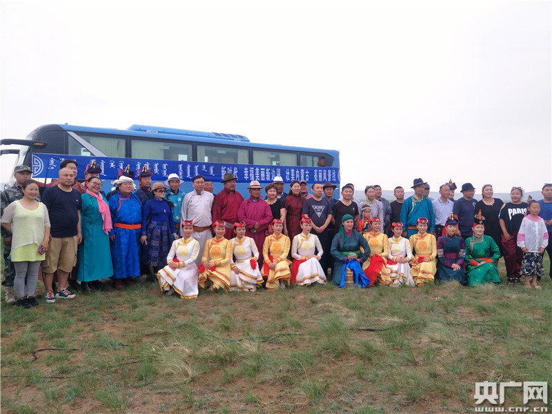 央廣網(wǎng)錫林浩特7月22日消息(記者王晶)草原上空剛還是灰白臉色,眼下卻漸漸沉下來,似乎在預(yù)謀著一場大雨。雖說天公不作美,但蘇尼特烏蘭牧騎的十幾位隊(duì)員們還是來了。