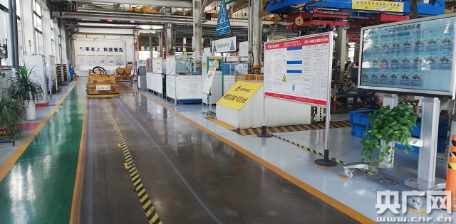 名為“奮進(jìn)者5號”的AGV運(yùn)輸車正在工作(9月13日 攝)(央廣網(wǎng)記者 唐新 攝)
