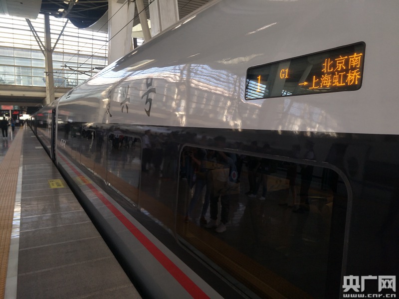 9月21日,北京南開往上海虹橋的列車即將發(fā)車(央廣網(wǎng)記者 王晶 攝)