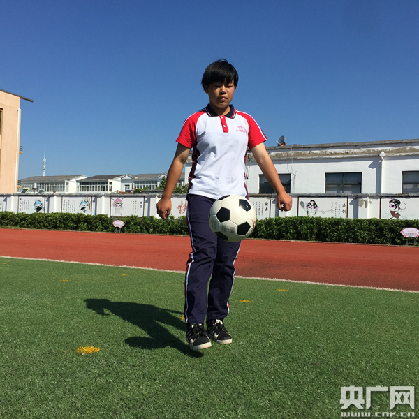 靦腆的笑容、一把馬尾辮,這些特征來自一名少年足球“小將”——小崗學(xué)校女子足球隊(duì)隊(duì)員章燦燦。記者見到她時(shí),她正和隊(duì)友們一起在學(xué)校的操場(chǎng)上練習(xí)墊球。