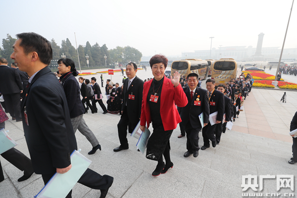 中國工會第十七次全國代表大會于今天(22日)上午在北京人民大會堂開幕,代表們紛紛入場。(央廣網(wǎng)記者王晶 攝)
