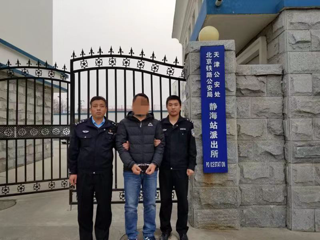 李某于12月15日被天津鐵路公安處靜海站派出所民警抓獲。(天津鐵路警方供圖)