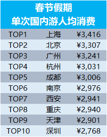春節(jié)假期國(guó)內(nèi)游消費(fèi)賬單:上海人出發(fā)最多,花費(fèi)最高