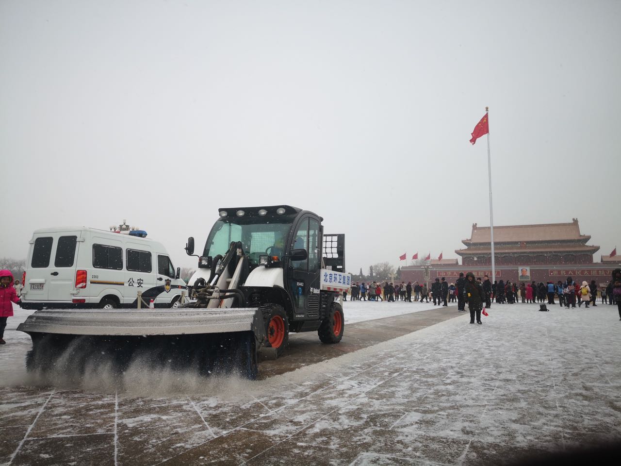 北京環(huán)衛(wèi)在天安門廣場進行除雪作業(yè)。(央廣網(wǎng)發(fā) 溫瑩瑩攝)