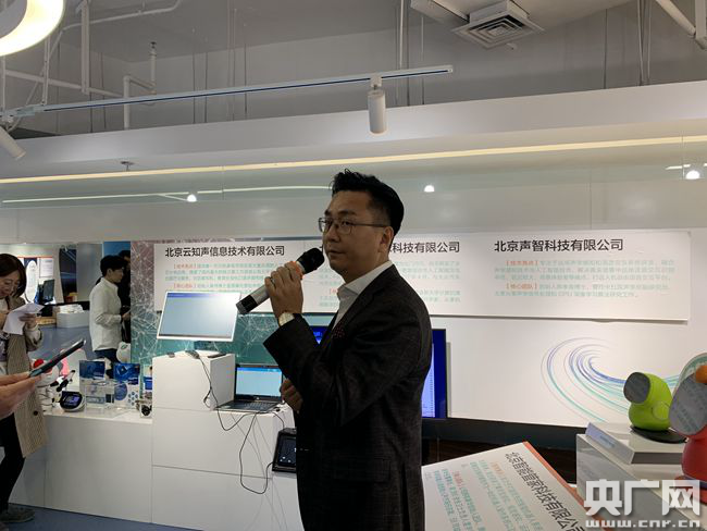 北京市海淀區(qū)中關(guān)村科技園內(nèi),一名科技企業(yè)負(fù)責(zé)人向記者介紹其公司研發(fā)的人工智能產(chǎn)品。(央廣網(wǎng)記者 孫冰潔 攝)
