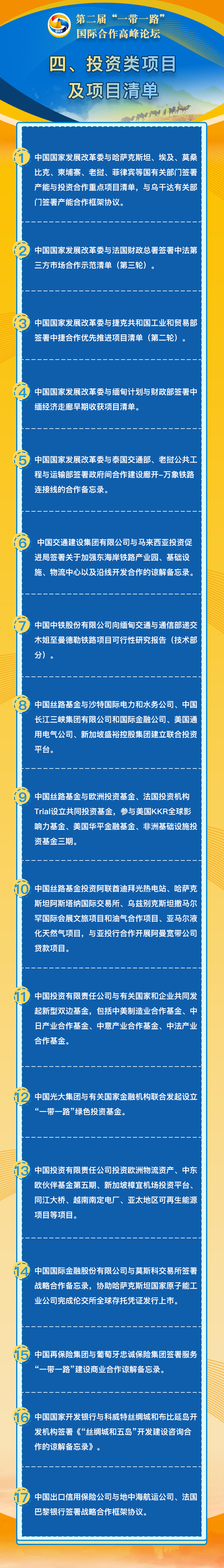 附:第二屆“一帶一路”國際合作高峰論壇成果清單