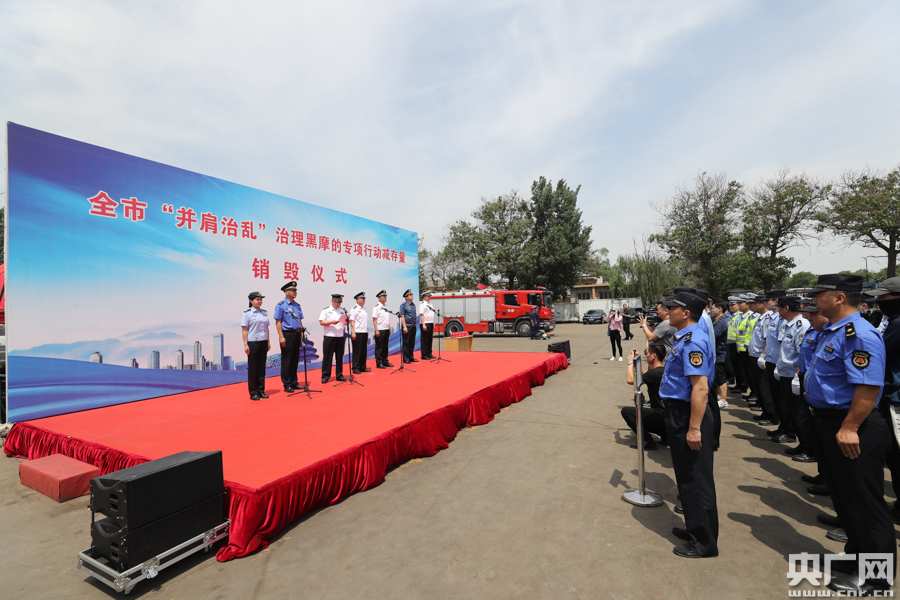 “黑摩的”專項行動減存量銷毀儀式。(央廣網記者 韓靖 攝)