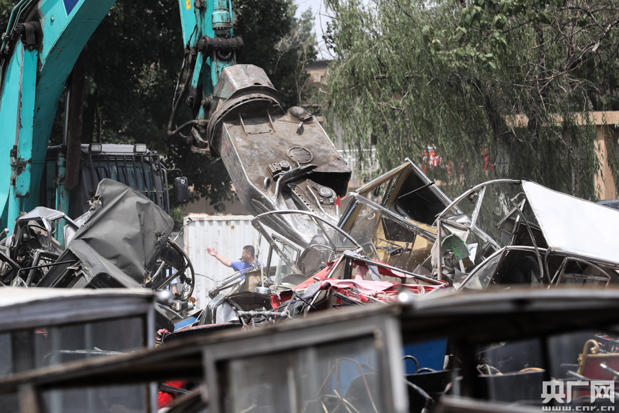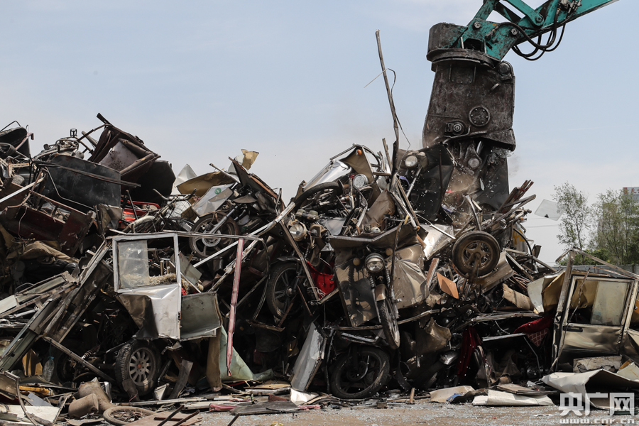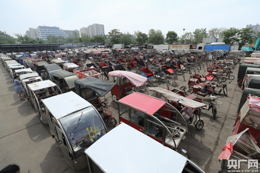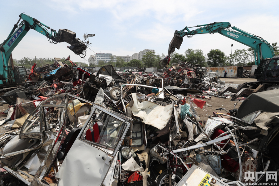 “黑摩的”銷毀現場。(央廣網記者 韓靖 攝)
