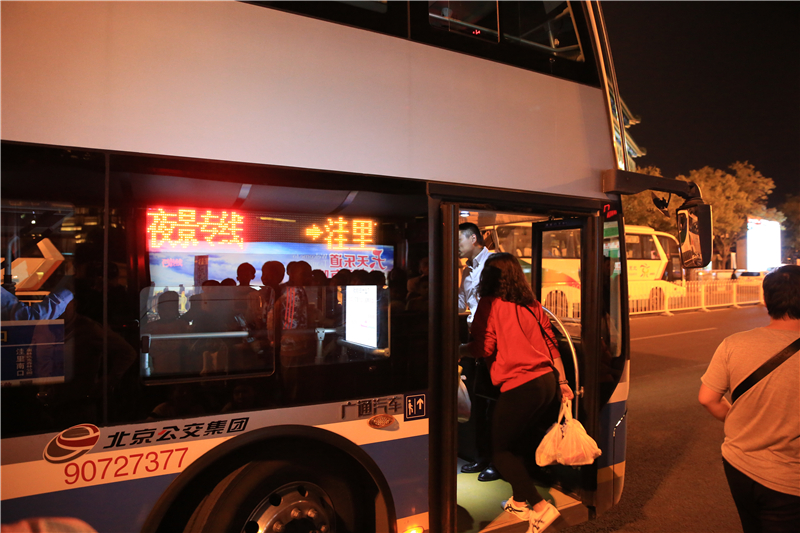 “夜景專線均使用雙層純電動(dòng)公交車,擁有高景觀、零噪音、零排放的特點(diǎn),游客在二層觀光時(shí)視野更好!北本┕幌嚓P(guān)負(fù)責(zé)人介紹,專線運(yùn)營時(shí)間為6月7日至6月9日,前門站發(fā)車時(shí)間為18:20、18:40、19:00,設(shè)前門、王府井路口北、鑼鼓巷、鼓樓、地鐵北土城站、北辰西橋北、國家體育館、洼里南口8站;洼里南口站發(fā)車時(shí)間為20:00、20:30、21:00,設(shè)洼里南口、國家體育館、北辰西橋北、地鐵北土城站、北新橋路口西、東內(nèi)小街、朝陽門南、前門東8站。單一票價(jià)10元。