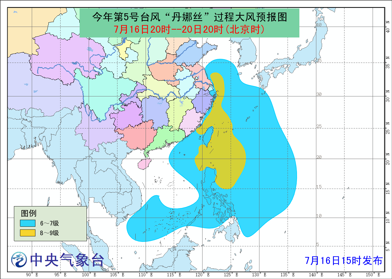 今年第5號臺風(fēng)“丹娜絲”過程大風(fēng)預(yù)報圖(圖片來源:中央氣象臺)