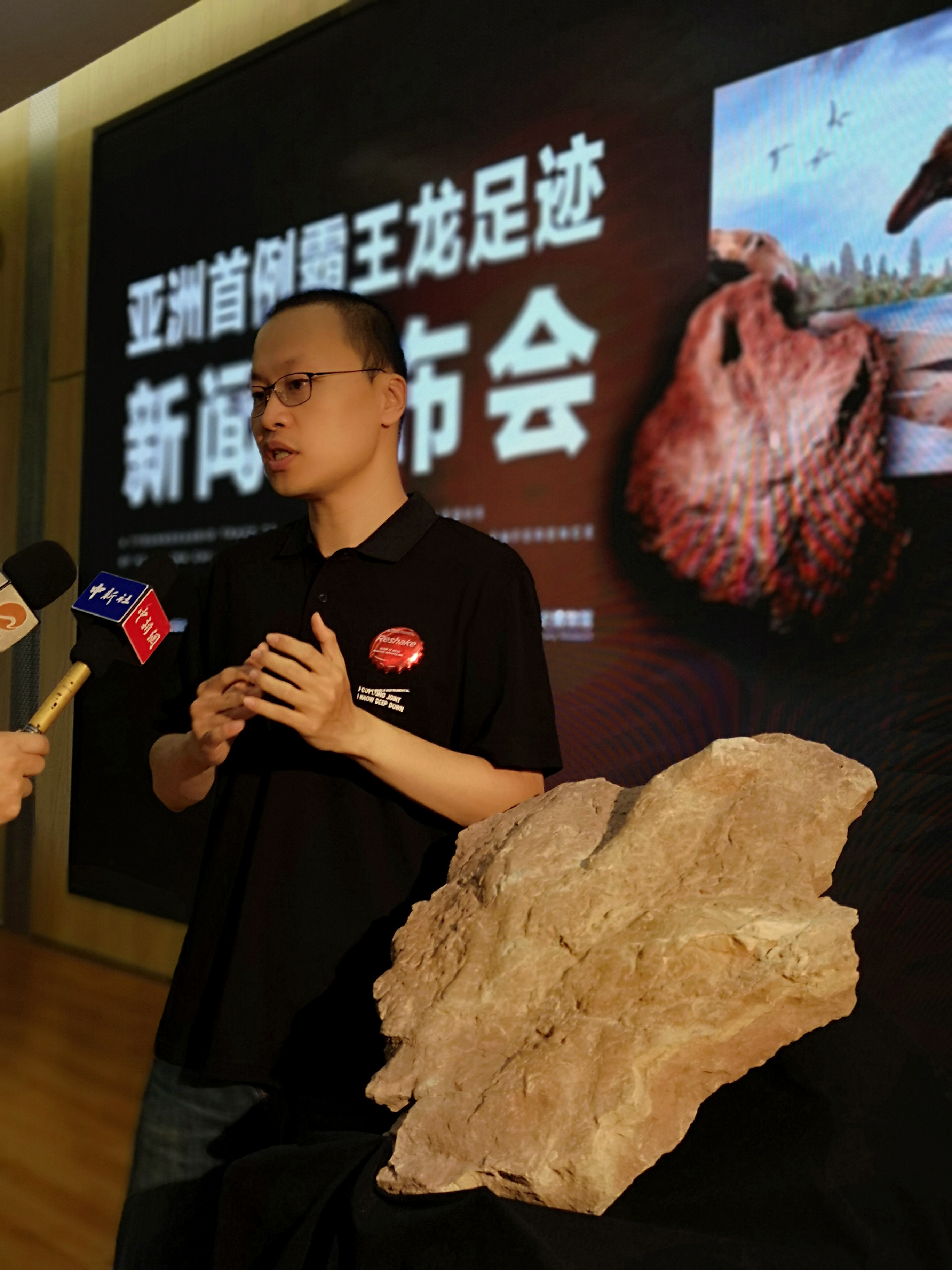 央廣網(wǎng)泉州7月29日消息(記者杜蘇閩)“7月15日,亞洲首例霸王龍足跡在江西省贛州發(fā)現(xiàn),這對研究中國白堊紀(jì)最末期恐龍動(dòng)物群的分布與演化有著重要意義。”今天(29日)上午,該重大消息于福建南安舉行的新聞發(fā)布會(huì)宣布。同時(shí)宣布稱,此霸王龍足跡標(biāo)本將收藏于南安英良世界石材自然歷史博物館。