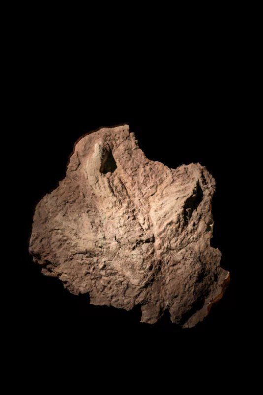 邢立達(dá)教授告訴記者,標(biāo)本最初是當(dāng)?shù)厝嗽谛蘼返臅r(shí)候發(fā)現(xiàn),施工隊(duì)清理石頭時(shí)候發(fā)現(xiàn)一塊巨大的紅色砂巖上有一個(gè)奇形怪狀的印記!斑@個(gè)足跡的爪痕尖銳,跖趾墊非常發(fā)達(dá),表明恐龍腳部穩(wěn)固,幾個(gè)趾頭,尤其是第II趾非常發(fā)達(dá),它的旁邊還保存有一個(gè)小小的,外翻的凸起,這很可能是大拇趾的痕跡。這是一個(gè)非常典型的肉食性恐龍的足跡,所有證據(jù)都表明這個(gè)足跡與發(fā)現(xiàn)于美國的暴龍足跡(Tyrannosauripus)非常相似。”他表示,在當(dāng)時(shí)的年代和地區(qū)只有暴龍類才能留下這么大的足跡,它同時(shí)與在加拿大發(fā)現(xiàn)的暴龍類足跡極其相似,“這也是我們將它鑒定為中國乃至亞洲首例的原因!