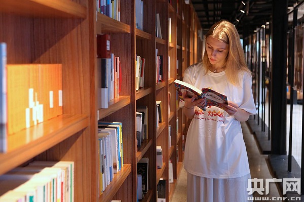 外國(guó)青年體驗(yàn)北京特色書(shū)店(央廣網(wǎng)記者 孫冰潔 攝)