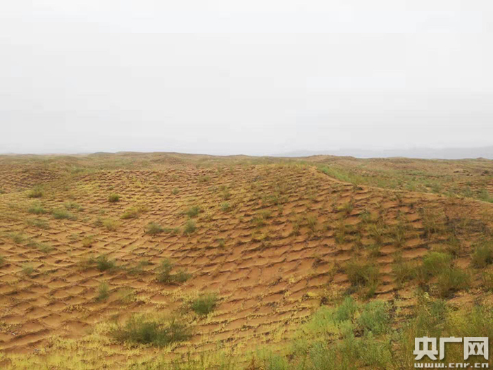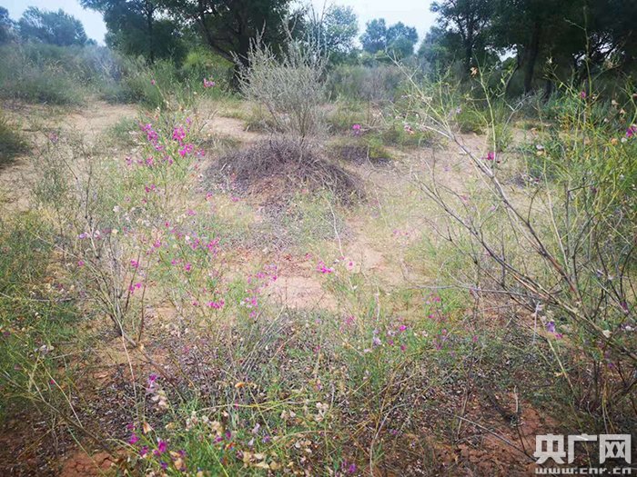 哈巴湖國(guó)家自然保護(hù)區(qū)內(nèi)隨處可見(jiàn)檸條和花棒等固沙植物。(央廣網(wǎng)記者 熊瑋 攝)
