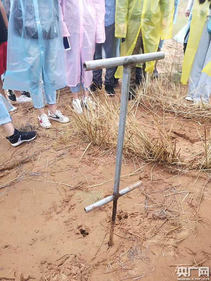 水分傳導(dǎo)式精準(zhǔn)型沙漠植苗工具。(央廣網(wǎng)記者 熊瑋 攝)