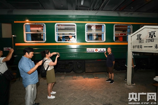 人們在綠皮火車前合影留念(央廣網(wǎng)記者 韓靖 攝)
