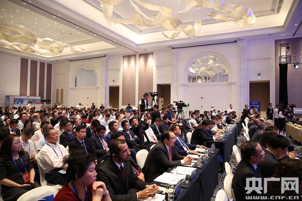 出席會議的中方代表在會上致辭(中央廣播電視總臺央廣記者 王新宇 攝)