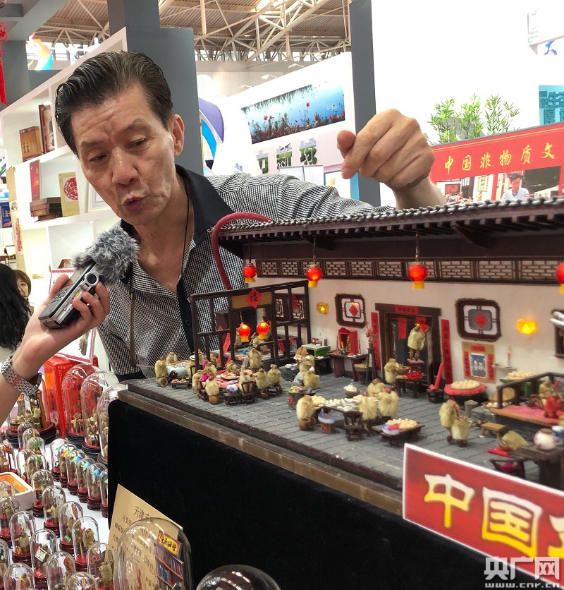 來自河南的朱先生一家在一個(gè)展位前停留了很長時(shí)間,他們馬上要出國旅行,正在為外國朋友挑選幾件小禮物,最終,他們挑選了兩只“小猴子”。原來,這些棗核大小的“小猴子”,是列入中國非物質(zhì)文化遺產(chǎn)名錄的民間手工藝術(shù),叫“毛猴”,它們的四肢是用蟬蛻(蟬褪下的空殼)做的,而身子是由一味叫做“辛夷”的中藥塑成,一個(gè)個(gè)小毛猴被手工藝人塑出各種生動(dòng)的動(dòng)作神態(tài),表達(dá)著諸如“長壽”“吉祥”“孝順”“幸福”等意象。