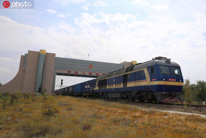 2019年9月11日,一列中歐班列通過二連浩特國門駛向歐洲。