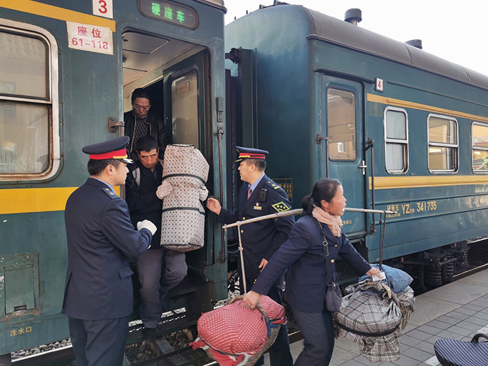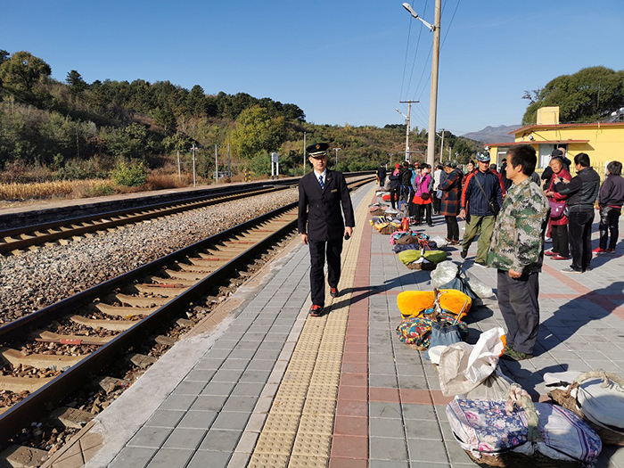 據(jù)承德車務(wù)段新杖子站長崔靖宇介紹,該站點(diǎn)一年四季都有“大筐隊”旅客乘車進(jìn)城,每天有百十來人。工作人員和老鄉(xiāng)們都很熟悉,會盡可能地幫助他們,如遇到列車運(yùn)行圖調(diào)整列車車次時間,他們會第一時間告訴村干部,通知到老鄉(xiāng);平時加強(qiáng)安全宣傳,還會為“大筐隊”開辟綠色通道,把貨運(yùn)到離上車最近的地方;車站還會積極跟調(diào)度部門溝通,在調(diào)整運(yùn)行圖時科學(xué)設(shè)置攜帶行李較多的“大筐隊”上下車的時間。