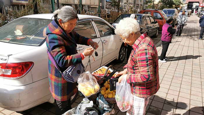 10點(diǎn)整,列車緩緩?fù)?吭诔械抡。旅客有序下車后收拾好自己的籮筐,奔向自己熟悉的小區(qū)和集市。張淑琴也來到了她熟悉的小區(qū),認(rèn)識她的老主顧會定點(diǎn)來購買她家產(chǎn)的無公害、無農(nóng)藥水果。晌午過后,張淑琴的幾十斤蘋果和紅薯干就售賣一空。