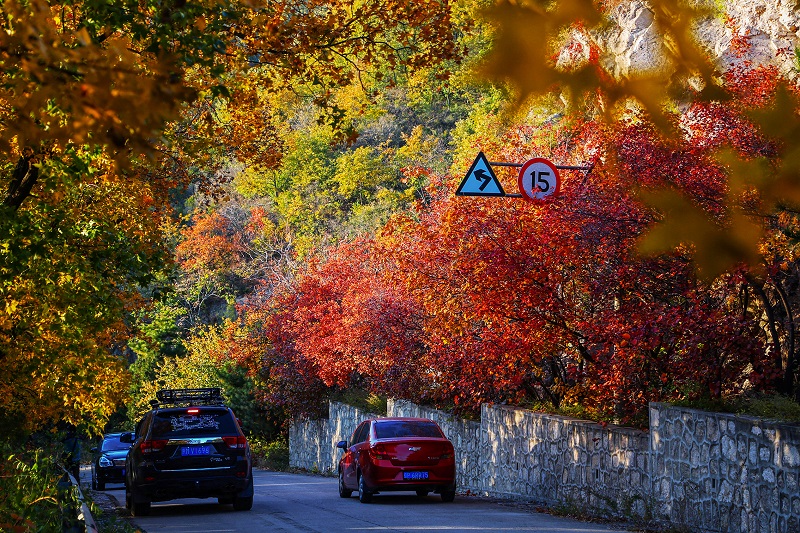 北京山區(qū)因?yàn)楹0屋^高,溫度較市區(qū)更低,秋色來到的會(huì)比市區(qū)早一些。從2002年起,北京全市就開始在平谷、懷柔、密云、昌平、延慶、門頭溝、房山以及順義、海淀、豐臺等區(qū)的山區(qū)部分推進(jìn)彩色樹種造林工程,共栽下彩葉林40多萬畝,為市民京郊金秋“賞紅”提供更多選擇。