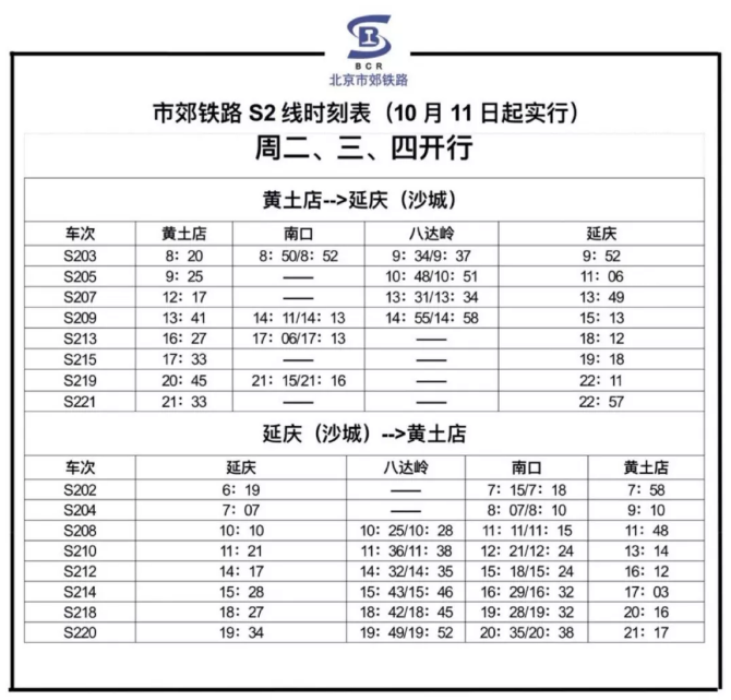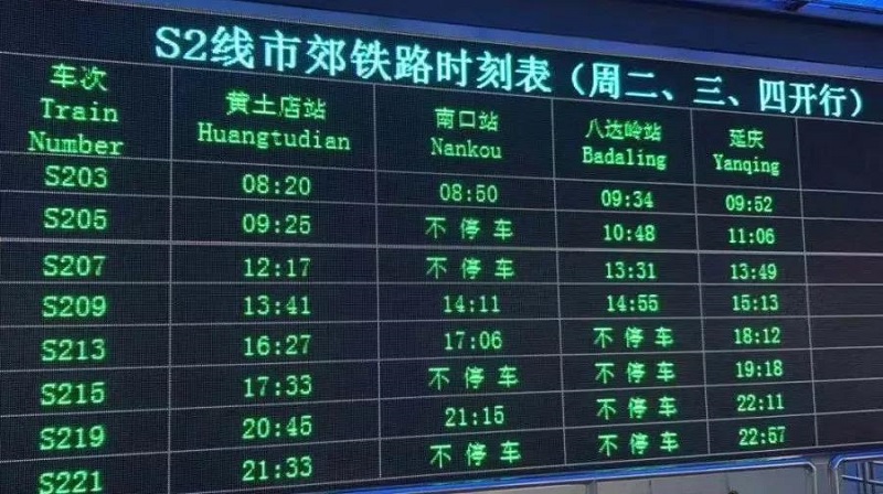S2線時(shí)刻表(央廣網(wǎng)發(fā) 北京鐵路供圖)