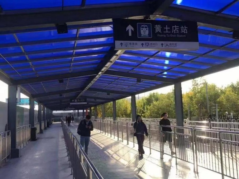 北京市郊鐵路S2線(延慶線)和S5線(懷密線)市內(nèi)始發(fā)站均為黃土店站。黃土店站緊鄰地鐵13號(hào)線、8號(hào)線霍營(yíng)站,乘客從霍營(yíng)地鐵站出站后,沿著柵欄和指示牌就可輕松到達(dá)火車(chē)站。