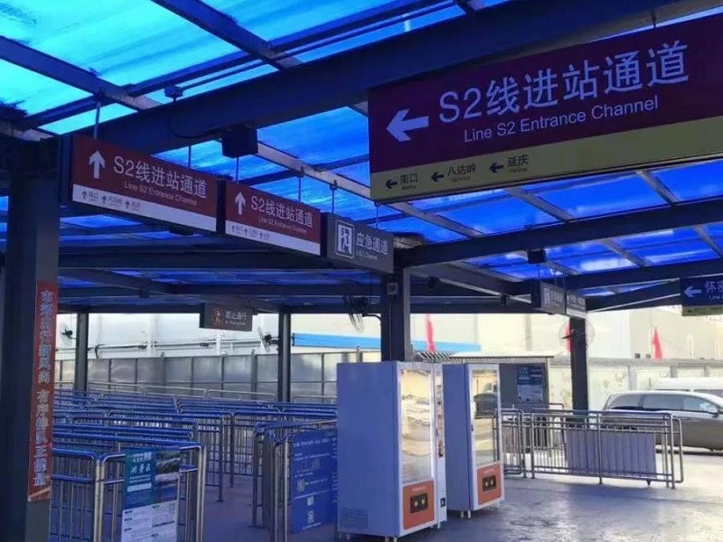 按照車(chē)站里的標(biāo)識(shí)指引,可快速購(gòu)票乘車(chē)。想去八達(dá)嶺、世園會(huì)的乘客就可乘坐S2線,如果是想去雁棲湖、紅螺寺、慕田峪或是古北水鎮(zhèn),可乘坐S5線。為了方便旅客乘車(chē),黃土店站內(nèi)的大屏幕全天都會(huì)播放車(chē)次信息。