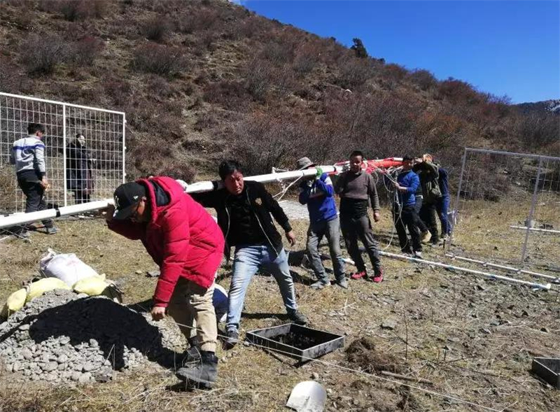 5月,西藏自治區(qū)氣象局全面推進(jìn)扶貧自動(dòng)氣象站建設(shè)。圖為建站過程中(中國氣象局供圖)