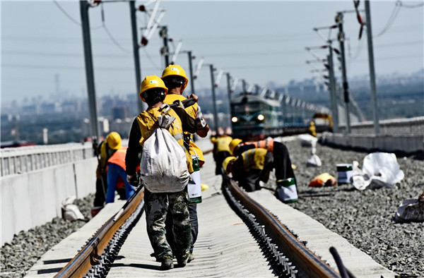 《我們鋪軌》 攝影:鐘岳(北京局集團(tuán)公司供圖)