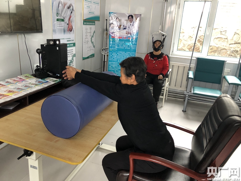 村民正在衛(wèi)生室內(nèi)進行康復訓練(央廣網(wǎng)記者 王晶 攝)