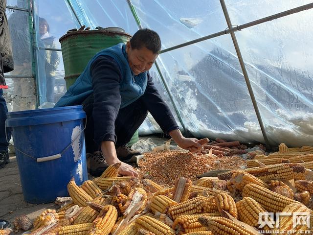 李秀珍收拾著從地里撿回來的玉米(央廣網(wǎng)記者 王晶 攝)