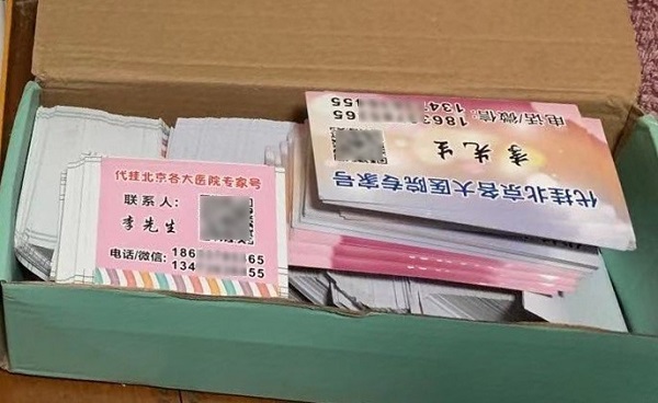 “號(hào)販子”分發(fā)的小卡片(北京市公安局通州分局供圖)