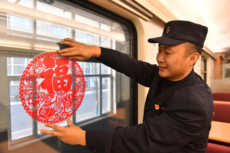 新年漸近,車廂上年味也越來越濃。今年春運,沈陽局集團(tuán)公司共派出4組72輛列車參與春運支南工作,列車將在1周內(nèi)從通化、哈達(dá)灣、沈陽等地陸續(xù)出發(fā),一路直達(dá)目的地廣州,重點擔(dān)負(fù)廣州到武昌、宜昌等地的旅客運輸任務(wù),屆時可滿足近4.8萬名旅客的乘車需求(央廣網(wǎng)發(fā) 沈陽鐵路供圖)