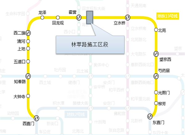 交通部門預計,本次林萃路施工總共工程時長為186小時,1月30日(正月初六)首班車起,地鐵13號線全線恢復正常運營。由于林萃路建設需段行13號線1、2號出入段線,若西直門至回龍觀站區(qū)間正常運營,13號線車輛將無法回車輛段進行檢修。因此,施工期間13號線西段(西直門站-霍營站區(qū)間)將暫停運營。立水橋附近設有地鐵車輛段折返線路,可滿足列車正常運營、檢修需求,東直門站-立水橋站區(qū)間正常運營。