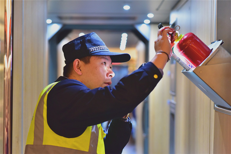 1月20日凌晨3點左右,重慶北動車所庫內,天還未亮,薛稀吉日就已經開始準備再次出乘了,為了保證更好地運送旅客,隨車機械師必須在始發(fā)前3小時開始檢查車組狀態(tài)、修復故障。到達站臺后,還要再次對車組高壓部件、車廂顯示等設備進行檢查確認,然后開始一天的值乘,運行途中還要進行多次巡檢。薛稀吉日說:“足夠的耐心和細心是隨車機械師的基本素質,也只有這樣才能把機械師的責任心體現到位。列車安全,旅客安全,容不得半點馬虎!