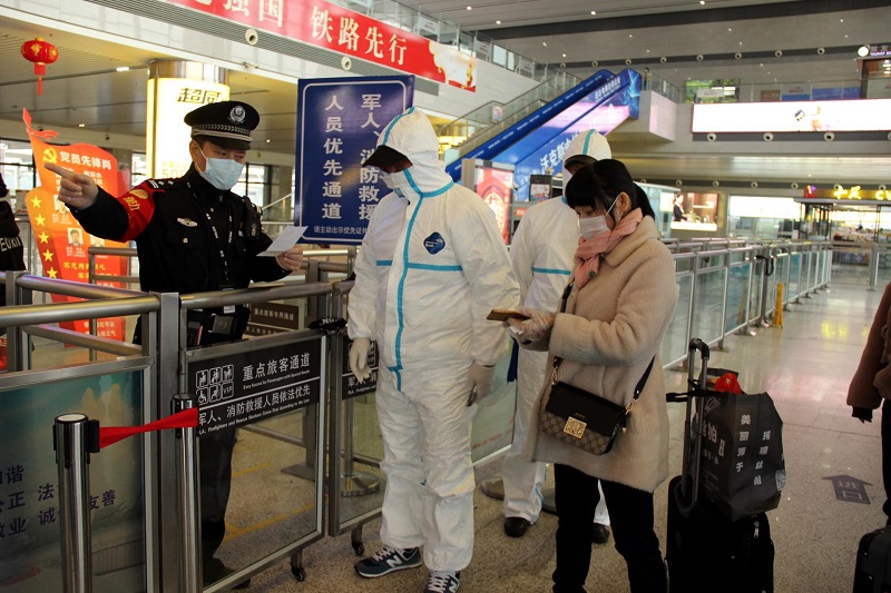 1月28日,襄陽鐵路公安處荊門車站派出所會同荊門市公安局特警,將一名強闖火車站,準備扒乘列車并伴有發(fā)熱癥狀的男子帶離車站,移交地方衛(wèi)生部門。