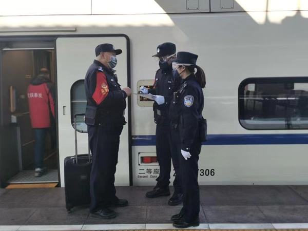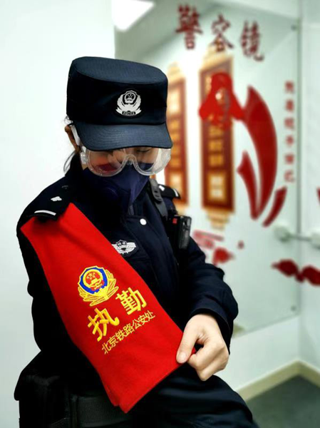 特殊時(shí)期,撫慰旅客的恐慌情緒也是楊小涵和同事們的重要工作。大年初二,楊小涵在廣場值勤時(shí),一位旅客匆忙趕來求助。楊小涵詢問旅客后了解到,這名旅客年前來北京看病,聽說北京有人感染新型冠狀病毒肺炎后,顧不上看病要返回哈爾濱,找到民警就是問車站是否安全!爸灰龊梅雷o(hù),就不會有問題的!睏钚『贿叞参柯每,一邊把旅客送到檢票口,交談過程中,旅客的情緒也逐漸穩(wěn)定下來。