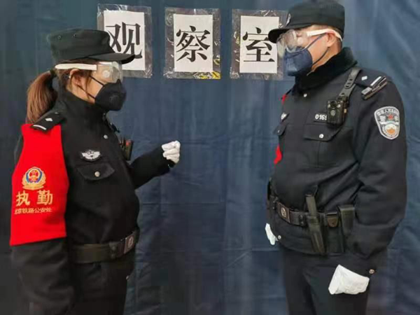 執(zhí)勤巡邏、處置警情、站車交接是楊小涵平日里是最普通的工作,而這些工作隨時(shí)都要接觸陌生的旅客,每次執(zhí)勤、執(zhí)行任務(wù),都要佩戴口罩、護(hù)目鏡、手套等防護(hù)用品!耙婚_始心里還是很害怕,他們從哪里來、是否存在風(fēng)險(xiǎn)是未知數(shù)!钡,走在出警的路上,一種責(zé)任感和使命感油然而生,微笑又重新回到臉上。楊小涵很快意識到,口罩、護(hù)目鏡不單純是一種防護(hù)設(shè)備,更標(biāo)志著警察的責(zé)任和使命,防護(hù)好自己是為了更好地工作,維護(hù)轄區(qū)穩(wěn)定、服務(wù)旅客群眾,在這個(gè)特殊“戰(zhàn)場”上抗擊疫情。