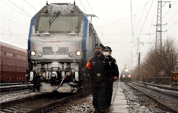 在管內(nèi)各大火車站廣場上,干部、黨員民警上崗執(zhí)勤加強巡邏力度,解答旅客問詢,幫扶困難旅客,維護乘降秩序。及時清掃站臺、廣場等旅客乘車通道上的積雪,積極協(xié)助客運部門在進出站等重點位置鋪設(shè)防滑物,防止旅客跌倒,同時,還安排備勤警力加強旅客安全出行保障,全力確保管內(nèi)治安秩序穩(wěn)定和鐵路大動脈的安全暢通。
