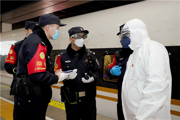 北京公安處組織干部、黨員、團員和入黨積極分子,參加一線疫情防控工作,并配合鐵路客運部門、衛(wèi)生防疫人員、地方公安機關(guān)開展接車、測溫和發(fā)熱人員的妥善處置等工作。