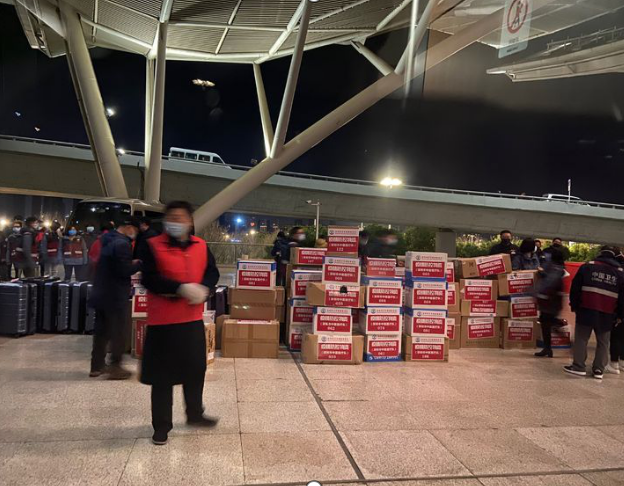20時(shí)40分,在全車班及車站救援隊(duì)的共同努力下,短短8分鐘時(shí)間,255箱救援物資和43名醫(yī)護(hù)人員的行李整整齊齊被運(yùn)送到站臺(tái)上。