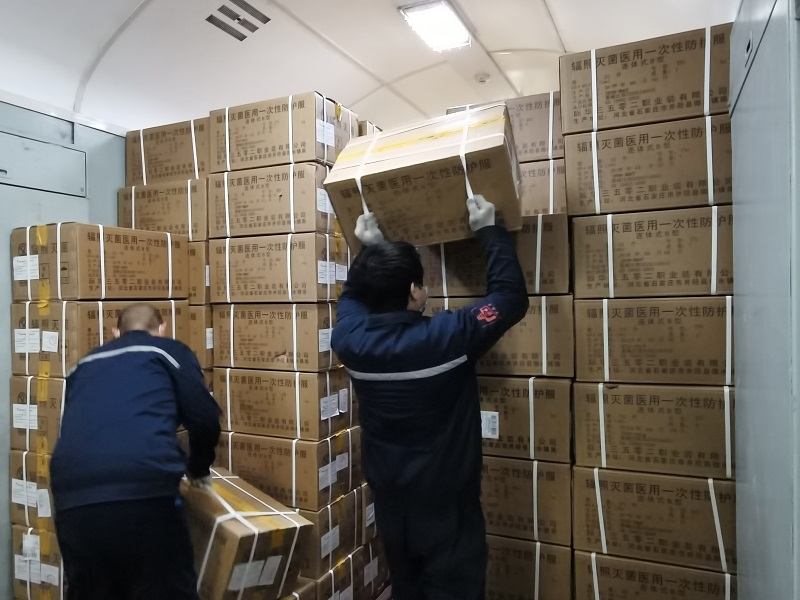 工人們正在裝運(yùn)防護(hù)服(北京鐵路供圖)