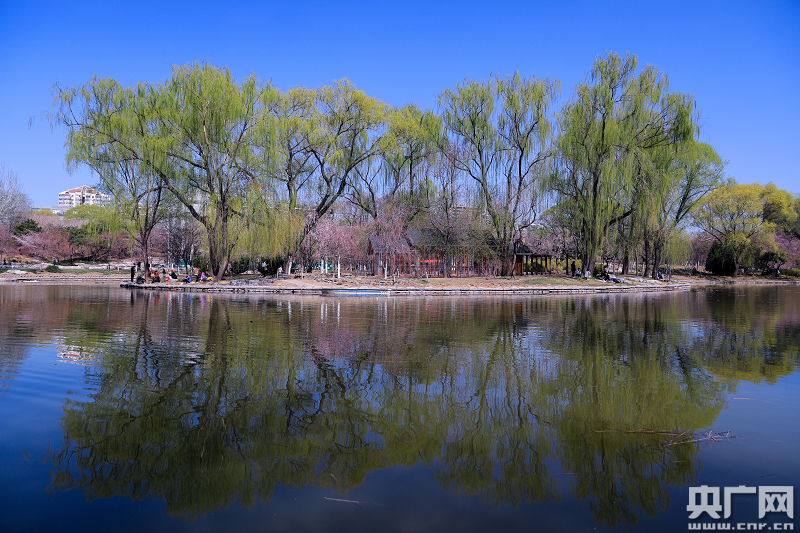 3月23日,在北京玉淵潭公園,游客正在游園(央廣網(wǎng)記者 石昊鑫 攝)
